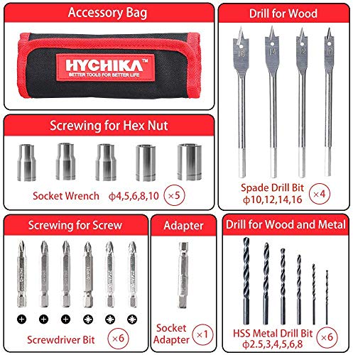 - 【CONTENUTO DELLA CONFEZIONE】 1 HYCHIKA Trapano Avvitatore a Batteria 12V, 1 Batteria al Litio 1,5 ah, 1 Caricabatterie rapido, 4 frese da legno, 6 Punte Elicoidali, 6 punte per avvitare, 5 Chiavi a Bussola e Custodia. In caso di domande sui nostri prodotti, non esitate a contattarci.