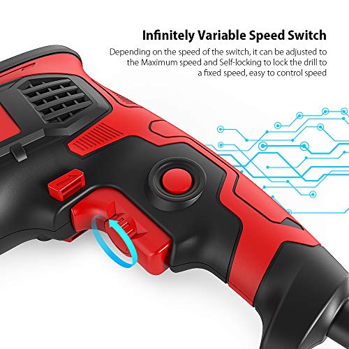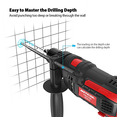 Trapano elettrico, Meterk 850w 3000 RPM Trapano a Percussione, martello e trapano 2 in 1 Impact Drill, fermo profondità e mandrino a azione rapida, impugnatura extra regolabile