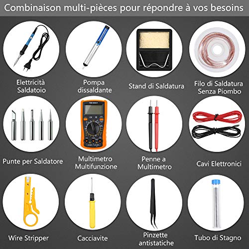 • 【Saldatore Precisione】 il nostro kit saldatore selezionato è disponibile in una borsa da trasporto in PU, è perfetto per il lavoro elettronico in classe, casa e ufficio e riparazioni in fabbrica, progettazione di circuiti, gioielli, legni, artigianato, fai-da-te, riparazioni auto, chitarra, orologi, hardware, riparazione di telefoni e Di Più.