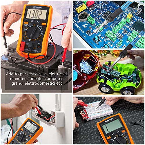 • 【Multimetro Digitale】 Multimetro digitale di facile utilizzo per la misura di tester CC e CA, corrente CC e CA, resistenza, diodo e test di continuità. Con un ampio display LCD è possibile ottenere direttamente i dati più precisi.