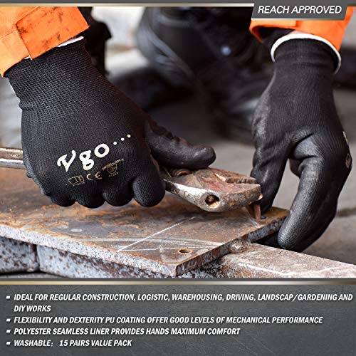 Vgo 30 paia guanti da lavoro e giardinaggio in PU, 10/XL, Nero