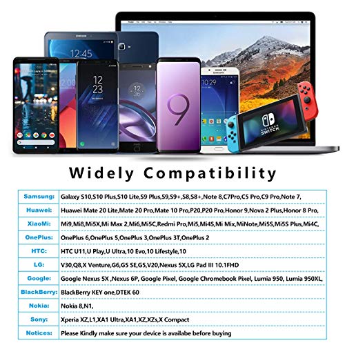 - Compatibilità universale: perfettamente compatibile con tutti i dispositivi USB C disponibili: Samsung Galaxy S10 Plus, S10, S9, S9 Plus, S8, S8 Plus, Note 9, Note 8, A5 2017, A40, A50, A70, Huawei Mate 20, Mate 20, Mate 20, Mate 20, Mate 20, Mate 20, Mate 20, Mate 10, caricabatterie Mate 10 Pro, Mate 9 Pro, P30, P30, P20, P20, P20, P10, P10 Plus, Honor 10. Honor 9/Honor 8/V10/V20, Sony Xperia XZ1/XA2, LG G6/G5, One Plus 6t/6, Motorola Moto G7/G6, Nokia 7 Plus, Nintendo Switch e molti altri.