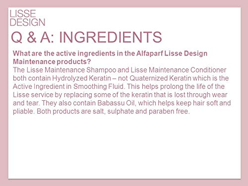Nutrire la vostra capelli e cuoio capelluto e prolungare gli effetti dei vostri trattamenti salone con AlfaParf Lisse design cheratina terapia. Da oltre 30 anni AlfaParf ha costruito una reputazione mondiale nel settore dei capelli e della bellezza per la produzione dei prodotti più efficaci disponibili sul mercato professionale. La formula contiene cheratina e di babassù che mantiene l'aspetto e la salute dei capelli.