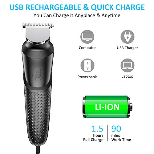 Babacom Rasoio Barba Elettrico, 5-in-1 Multifunzione Tagliacapelli Uomo con Turbo Funzione, Barba Grooming Kit Cordless/USB Ricaricabile Capelli/Barba/Naso/Corpo/Orecchie Trimmer con Pettini