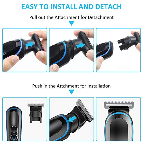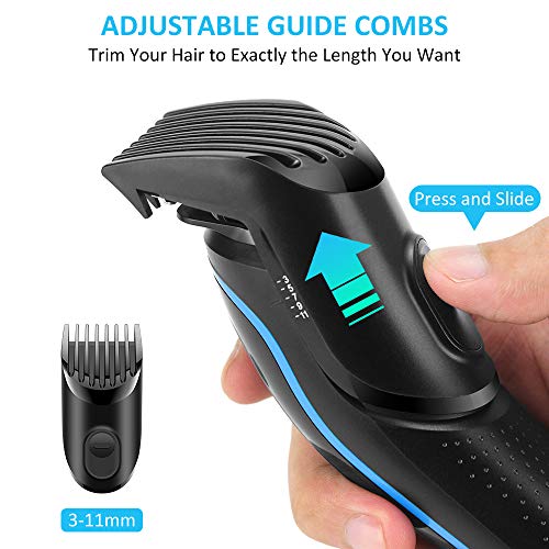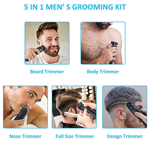 - ✓【5 in 1 per Tutte Le Tue Esigenze di Pulizia】 Viene fornito con ben 5 diversi attacchi ed un pettine regolabile (3/5/7/9/11mm) per rifinire con precisione: full size/design/barba/naso/body trimmer. L'esclusivo kit di per lo stile e la cura della persona tutto in un unico prodotto che ti aiuta a realizzare 5 lavori diversi.