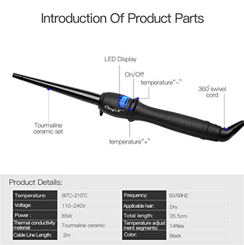 - Ferro arricciacapelli conico: ci sono 10 files temperature 110 ° C-210 ° C per capelli diversi.