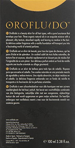 Orofluido Beauty Elixir 100 ml Beschreibung BEAUTY ELIXIR 25ML Orofluido ist ein Elixier, das unvergleichliche Seidigkeit, Leichtigkeit und Glanz in Ihr Haar bringt. Ein Schönheitselixier für alle Haartypen. Das Haar Wird von Luxus umhüllt. Drei natürliche Öle in einer exquisiten Mischung: Arganöl, Leinsamenö, Erdmandelöl
