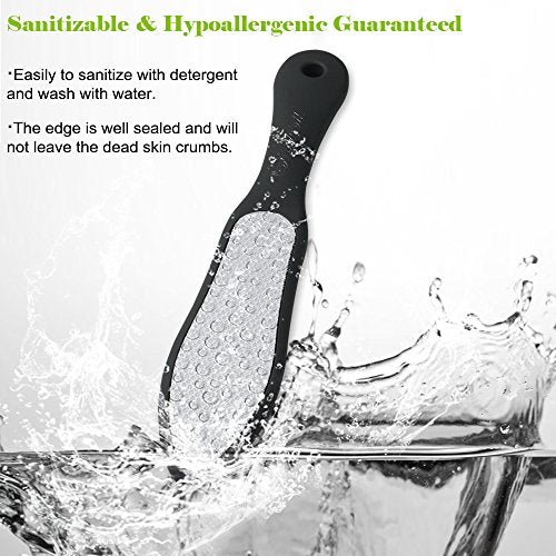 • La superficie dell'acciaio inossidabile di grado chirurgico con un'ottima nitidezza delle lamierine funziona istantaneamente per arricciare gli strati di calli secchi e la pelle dura, può essere utilizzato su piedi bagnati e asciutti.