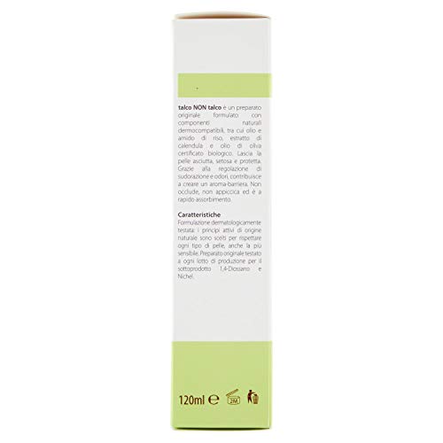 Taglia:120 mlDescrizioneGrazie all'amido di mais e di riso' è particolarmente indicato come coadiuvante in caso di sudorazione e pelle umida. il preparato dona alla pelle una piacevole sensazione di freschezza rendendola morbida e setosa. Oltre alla funzione eudermica dell'amido delle vitamine e degli emollienti contenuti nella formulazione' l'estratto di neem ed il profumo contribuiscono a creare in prossimità della ficie cutanea un aroma-barriera protettivo.Contenuto della confezione1 pezzo