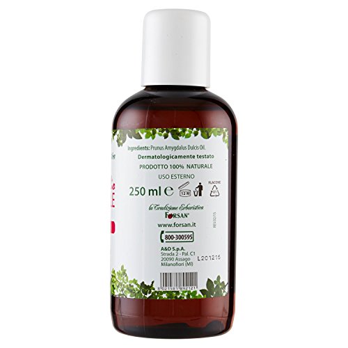 La Tradizione Erboristica Forsan - Olio Mandorle Dolci Puro al 100% - Olio senza profumo Ideale per la Cura della Pelle Secca, Smagliature, Capelli e per Massaggi - 250 ml