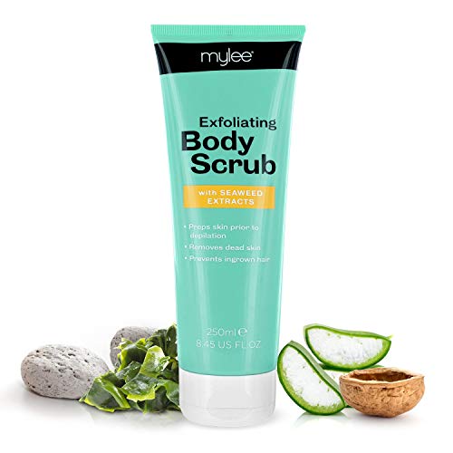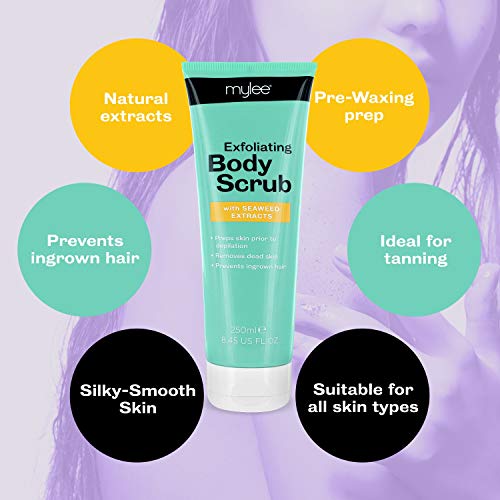 Mylee Scrub corpo esfoliante e ammorbidente - Con estratti naturali di alghe, Aloe Vera e Monoi di Tahiti - Previene peli incarniti e irritazioni da rasatura - Trattamento pre abbronzatura e ceretta