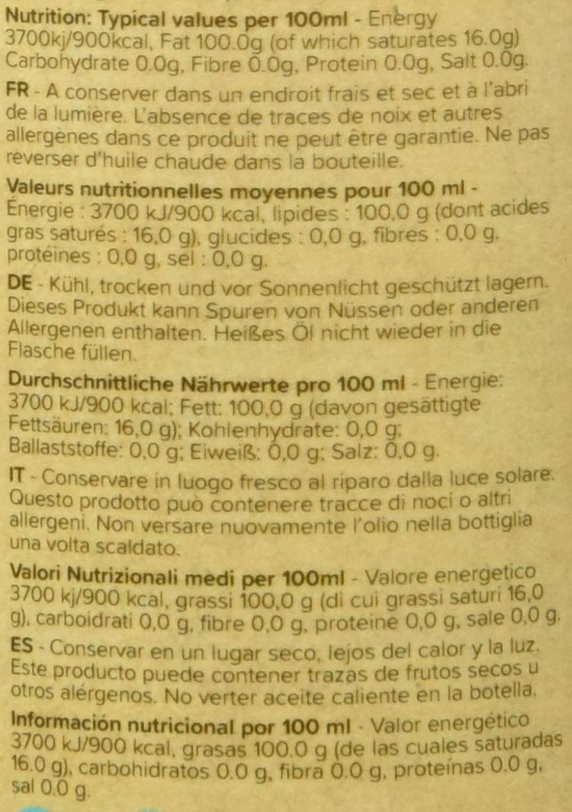 - Olio di Argan, puro al 100%, raffinato. Paese di origine: Marocco. Odore leggero di olio.