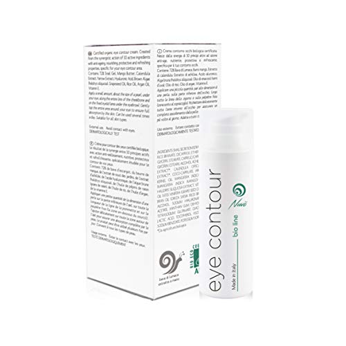 Nuvo' 72% Bava di Lumaca Crema Contorno Occhi BIOLOGICA CERTIFICATA con Acido ialuronico Olio di Vinaccioli Vitamina E - Maxi Flacone 30ml Contro Borse Occhiaie Antirughe 100% Made in Italy