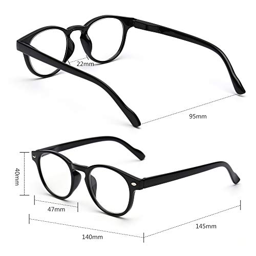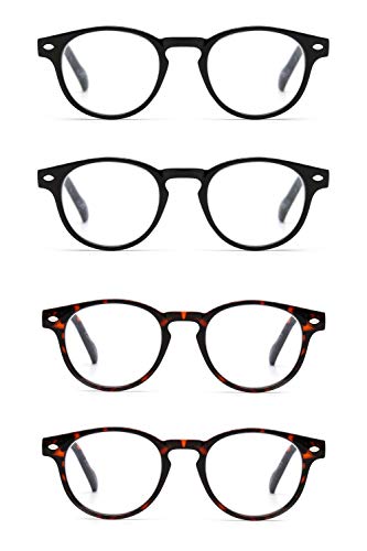 Colore:2 Pacchi Neri E 2 Pacchi Tartaruga | Taglia:+1.5 JM 4 Paia Occhiali da lettura leggeri in plastica con cerniera a molla occhiali rotondi per uomo e donna Dettagli del prodotto: Telaio: Plastica composita Lenti: PC trasparente Colore: nero, tartarugato, nero sfumato, marrone sfumato, 4 colori misti Diottrie disponibili: +1.0, +1.25, +1.5, +1.75, +2.0, +2.25, +2.5, +2.75, +3.0, +3.5 CLASSE E CONVENIENTE Design rotondo ed elegante & materiale di alta qualità & cerniera a molla, perfetto per uomini e donne, comodo da indossare a lungo senza affaticare gli occhi durante la lettura o il lavoro. 4 pezzi con sacchetto di feltro Puoi ottenere 4 paia di occhiali da lettura una volta sola, tenere un paio a casa, in ufficio o in qualsiasi altro posto in cui potresti aver bisogno in un pizzico, evitando di passare il tempo a cercare occhiali. Contenuto del Pacco 4 x Occhiali da Vista 4 x borsa per occhiali 1 x Cleaning Cloth 4 x Porta tracolla per occhiali CONSIGLI PER LA PULIZIA: Utilizzare una soluzione per lenti delicate. Per evitare graffi Non asciugare mai le lenti quando sono asciutte (potrebbero esserci polvere o particelle). Utilizzare materiali morbidi come panni per la pulizia, non usare salviette di carta o altri materiali ruvidi.