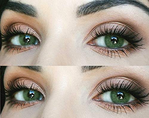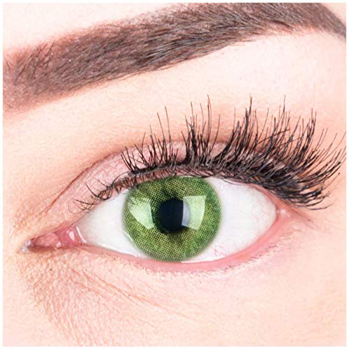 GLAMLENS Lenti a contatto colorate verdi Green - mensili - con porta lenti a contatto - verde naturali in silicone idrogel - 2 pezzi - DIA 14.0 - senza correzione 0.00 diottrie lente a contatto
