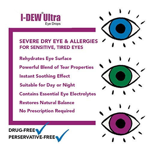 I-DEW Ultra - Collirio per allergie, secchezza oculare e occhi rossi, senza conservanti, lubrificante - Saldi invernali Sconto del 50% - Adatto a utenti di lenti a contatto