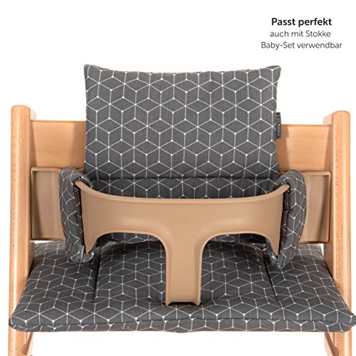 LaLoona Cuscino per Seggiolone Pappa Tripp Trapp - Cuscinetto per Stokke -Copriseduta e Coprischienale in due pezzi - Riduttore per Seggiolone - Grigio e Bianco