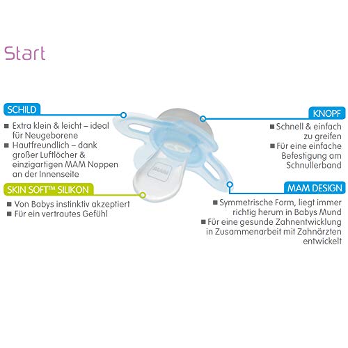 MAM 66643811 - Start, Ciuccio in silicone 0-2 mesi, confezione doppia, bambino (colori assortiti)