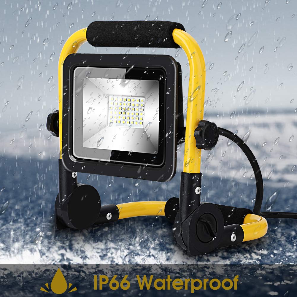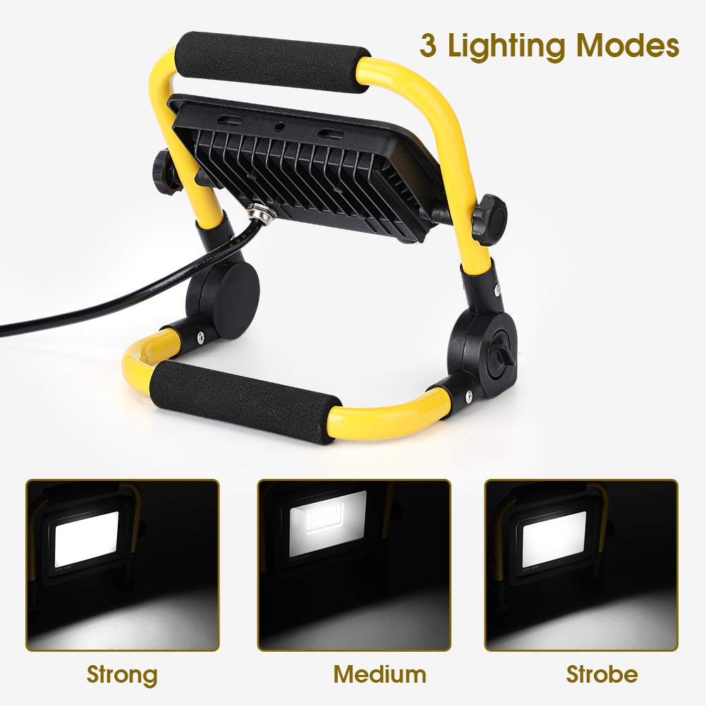 Faretto LED Portatile 50W, Ultra Luminoso Faretto da Cantiere 4500lm, 3 Modalità Faretto LED da Esterno Impermeabile IP66, Lampada da Lavoro con Cavo da 5 Metri, Proiettore da Cantiere Con 1 Gancio
