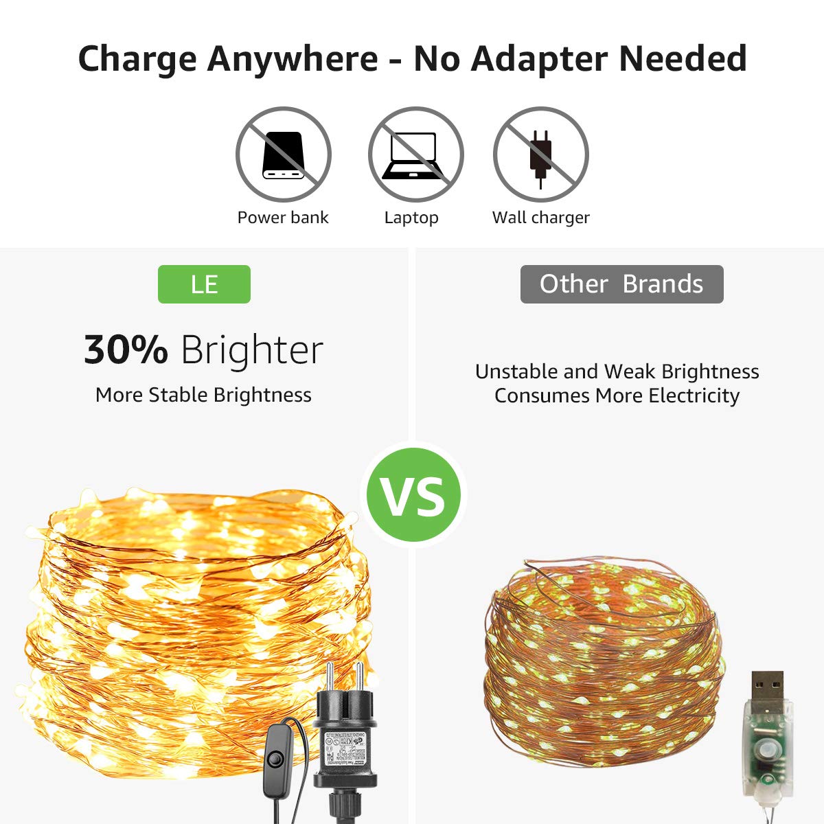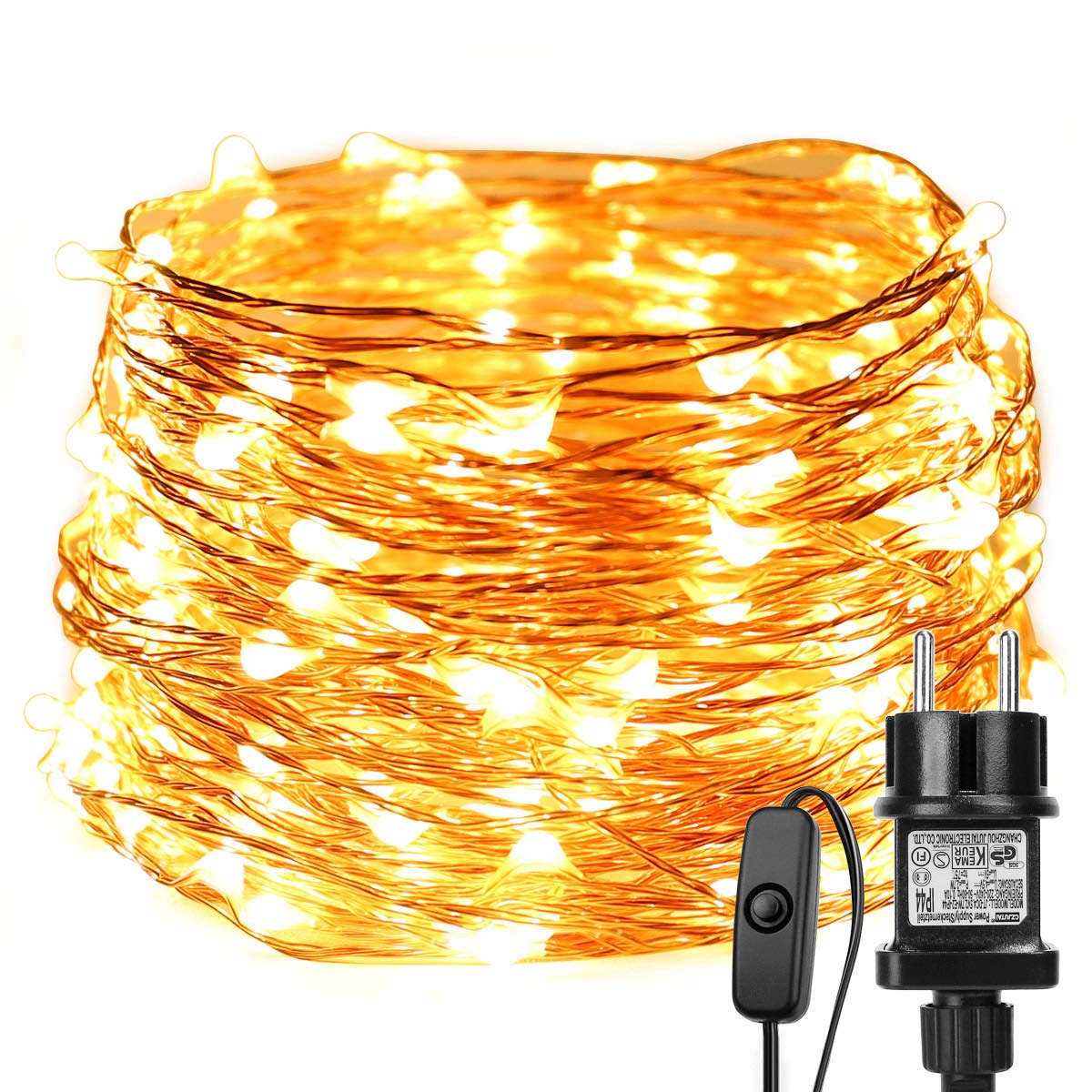 LE Luci Catena Filo in Rame 20m 200 LED Bianco Caldo 3000K, 20m,