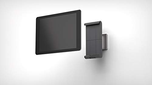Durable 893323 Porta Tablet da Parete, Robusto, Versatile, Applicazione Stabile e Sicura, 85 x 50 x 180 mm, Argento Metallizzato