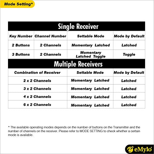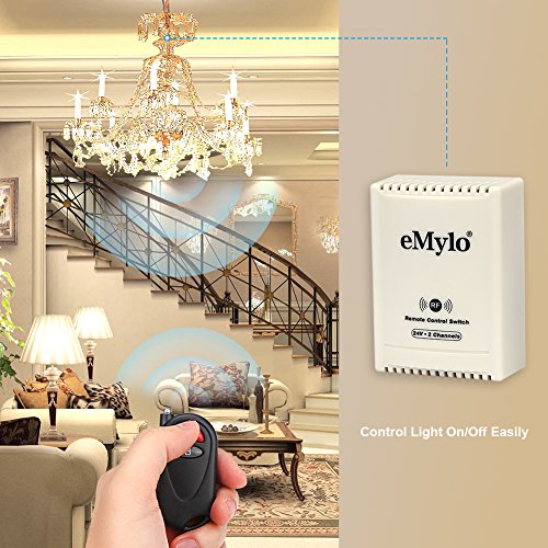 eMylo DC 24 V 2 canali 433 Mhz telecomando RF modulo relè senza fili Interruttore Domotica Interruttore fai da te con trasmettitore RF per lampada/Porta garage/Motore