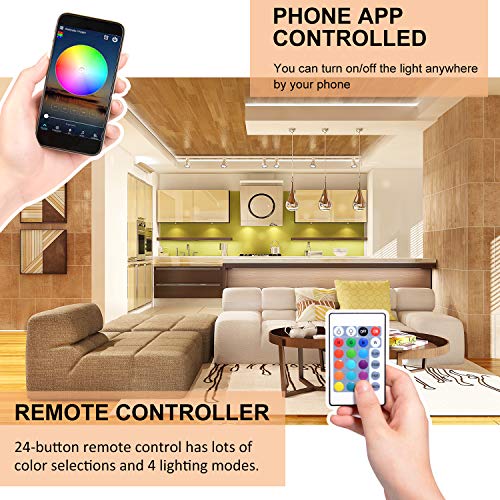 - 【Comandato da Voce e Telecomando】 Tranne controllato da app nel telefono, questa striscia luminosa è compatibile con Alexa e Google Home, libera le mani mentre controlli la luce. Utilizzare i comandi vocali, è possibile accendere e spegnere le luci, cambiare i colori e renderlo più luminoso o più scuro. Oltre al controllo vocale intelligente, offriamo anche il tradizionale telecomando a 24 pulsanti. Offrire una varietà di comfort.