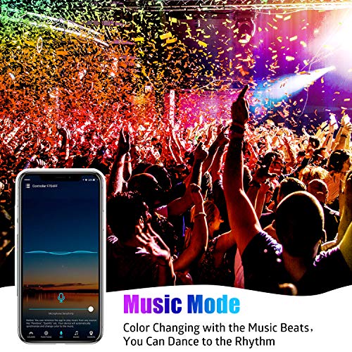 - 【Musica e Modalità Timer】 È possibile scegliere la modalità musicale in app, quindi questa luce striscia LED cambierà casualmente i colori, modalità dinamiche ed effetti secondo la musica registrata e il suono, rendere l'intera atmosfera più attiva, tutti nella stanza daranno ballare alla musica immediatamente. È inoltre possibile impostare un timer per diverse occasioni, come impostare un allarme a tempo per illuminare e svegliarsi al mattino.