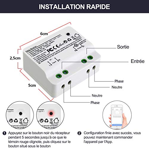 - Garanzia: l'interruttore relè Wi-Fi funziona con tutti i tipi di luce, come luce a led, luce a incandescenza, luce al tungsteno, CFL ed elettrodomestici. Prodotto certificato CE, RoHS e FCC, 2 anni di garanzia. Qualsiasi aiuto di cui hai bisogno, non esitare a contattarci