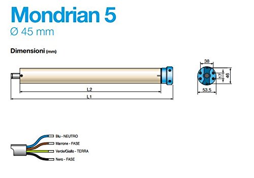 Kit Came Mondrian 5 per tapparelle, schermi e tende da sole, composto da: 1x motore tubolare 230V a, Potenza 50nm, sollevamento 92kg (cod. Y5050a121mo ;); ; 1x adattatore per rullo ottagonale diametro 60 001YK5101 1x inserto di sicurezza 001ym0105 ; 1x supporto regolabile con utensile per regolazione finecorsa 001YM0005 possibilita; di utilizzo su tubo da 45 o da 60 mm tondo oppure ottagonale.Finecorsa manuale meccanico con regolazione progressiva a viti.Testa universale per applicazione di qualsiasi piastra di fissaggio.Cavo di collegamento incluso: 2, 5 m. Diametro esterno 53, 5 mm.
