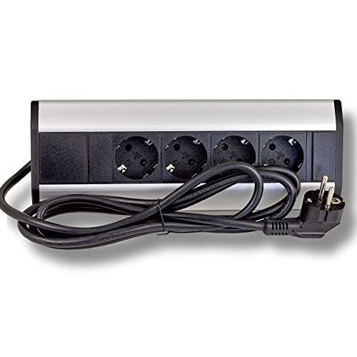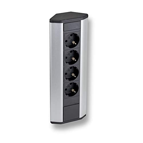 Premium presa angolare 4 X Schuko in alluminio per cucina, ufficio, mobili. Ciabatta elettrica con cavo Schuko da 1,8 m. Multipresa ideale per il piano di lavoro come presa di montaggio.