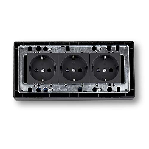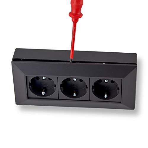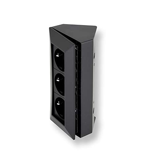 Presa angolare montaggio 3 X Schuko nero, per cucina, ufficio, officina. Ciabatta elettrica a 3 prese, ideale per piano di lavoro cucina, presa di montaggio o presa da incasso