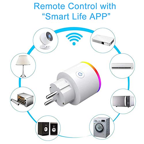 Presa Intelligente EMC Italy | Spina WiFi con LED RGB e Monitor Consumo Elettrico | Compatibile conAlexa, Google Home per iOS / Android | Funzione Timer e Temporizzazione | Potenza 16A - 3680W