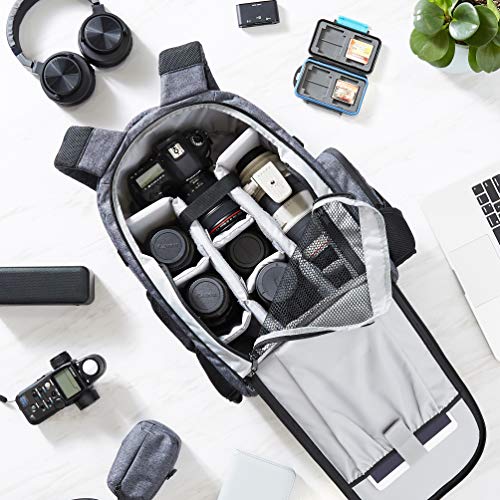 - Custodia personalizzabile per una fotocamera, accessori con tasca dedicato per un laptop da 13 pollici (33 cm) o un tablet da 12 pollici (30,48 cm); include una tasca laterale in rete per l’acqua e un passante per treppiede/monopiede