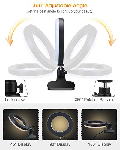 • ★【Disegno pratico:】Design 2 in 1 che combina il clip per cellulare e l’anello di luce assieme, permettendo di raggiungere un’impostazione professionale; La testa della ring light può ruotare di 360°per offrire una luce migliore all'angolo migliore.