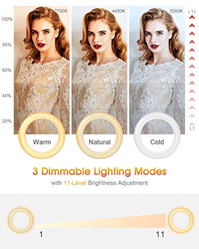 • ★【3 Modalità & 11 Luminosità Regolabile:】Luce ad anello da 6 pollici, è dotata di tre modalità di colore, 11 luminosità regolabile per la vostra scelta, per soddisfare tutte le vostre esigenze in diversi ambienti è fornendo diverse sorgenti luminose per le foto o video, molto popolare.