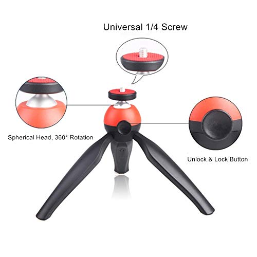 Mini treppiede con supporto per cellulare, rotazione a 360°, Rosso