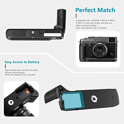 • COMPATIBILITÀ: L’impugnatura portabatteria si adatta alle fotocamere Fujifilm X-PRO3 X-PRO2 X-PRO1. È un accessorio indispensabile per chiunque abbia le mani di dimensioni medie o grandi, o per coloro che si preoccupano di cadere la fotocamera.