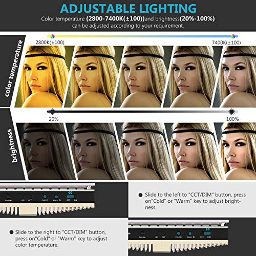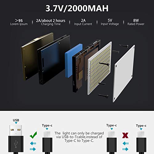 - LUCE LED IN METALLO AGGIORNATA: Dispone di 128 bulbi LED SMD da CRI 95+ e 2300lux@0,3m. La temperatura di colore è regolabile da 2800K a 7400K e la potenza è 8W. È possibile ruotare il tasto CCT/DIM e premere il bottone FREDDO/CALDO per modificare la temperatura di colore da livello 1 a livello 4 (con l’incremento del 25%) e la luminosità da 1 a 5 (con l’incremento del 20%). Inoltre, la luce LED adotta una batteria ricaricabile a litio incorporata e una presa di ricarica a USB Tipo-C.