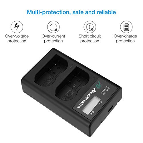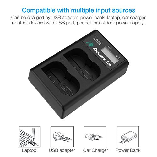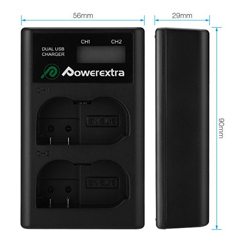 Powerextra - Caricabatteria Dual USB con display LCD, funziona con fotocamere Nikon EN-EL15,EN-EL15A e Nikon D7100, D750, D7000, D7200, D7500, D810, D610, D800, D850, D600, D500, D800e, D810a, 1v1
