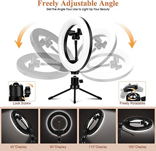 - 【Supporto per Telefono Largo e Testa Girevole】Supporto smartphone da 2.2 ~ 3.4 pollici di larghezza, progettato con testa a sfera liberamente ruotabile a 360 °, in grado di regolare facilmente l'angolazione della luce dell'anello a led, non solo ti consente di ottenere un angolo migliore per presentare sul tuo telefono, ma ottieni anche il miglior angolo di luce supplementare, perfetto per truccare, scattare foto, fare video, leggere libri e streaming live, ecc.