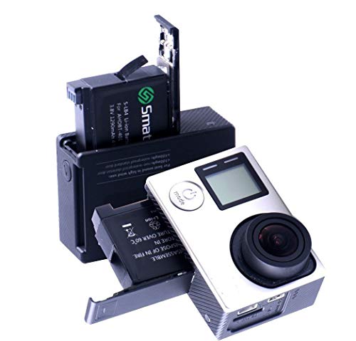 Smatree Batteria di Ricambio (Confezione da 2), Caricatore a 3 Canali Compatibile con Videocamera GoPro Hero 4