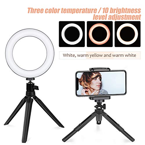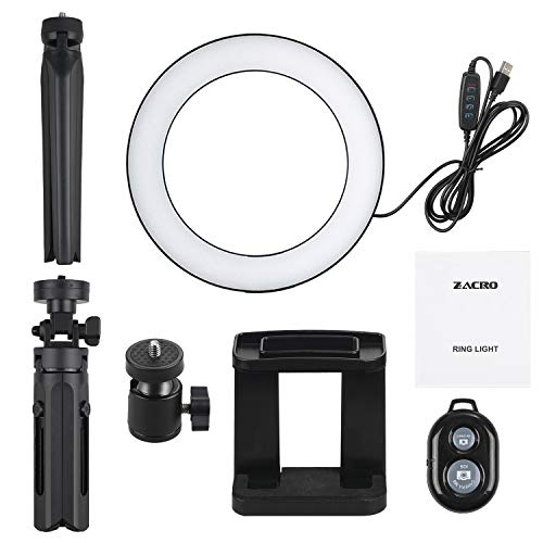 Zacro - Anello a LED con supporto treppiede e supporto per telefono, 3 modalità di luce e 10 livelli di luminosità ad anello LED per selfie, cellulare, streaming live e trucco.