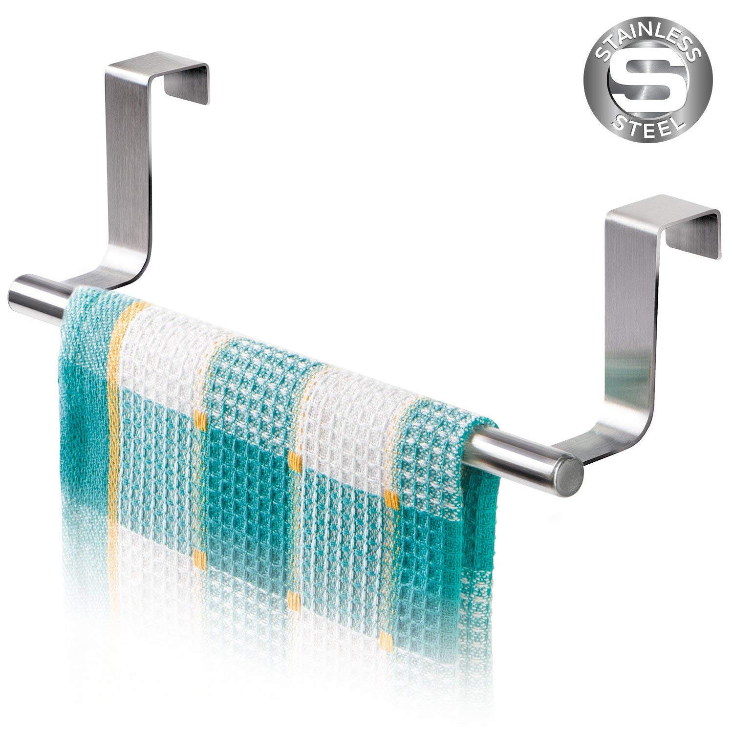 Elegante, in acciaio inox spazzolato, porta strofinacci. Installazione facile e veloce sopra la porta, si adatta a porte standard di 2 cm. Semplice, attraente salvaspazio. Permette ad asciugamani, strofinacci o panni di asciugare velocemente. Dimensioni: 23X7.2X6 cm