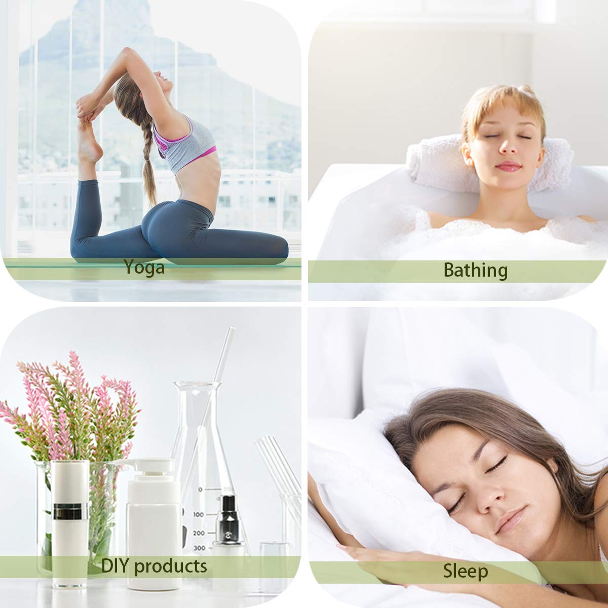 - ♥ Oli essenziali naturali: ingredienti naturali, sani e non tossici. Utilizzato nel diffusore di aromi, nell'umidificatore ad ultrasuoni, nella pulizia della casa, ecc.