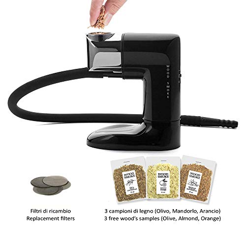 Ecco il resistente affumicatore da cucina della Wood Smoke. Questo affumicatore professionale presenta tutte le migliori caratteristiche dei modelli presenti sul mercato, concepito lavorando con alcuni tra i migliori chef in tutto il mondo per creare il miglior affumicatore elettrico sul mercato. La tramoggia estraibile di grande capacità in acciaio inox per l'accumulo dei trucioli di legno, aiuta a facilitare la pulizia dell'affumicatore. La base della pistola affumicatrice è stata migliorata, ottenendo un risultato di altissima qualità. Lo smoker bbq della Wood Smoke è perfetto per l'aggiunta di meravigliosi aromi affumicati, si adatta facilmente a qualsiasi alimento e cocktail utilizzando fumo fresco e senza dover aggiungere calore. Ottimo per la cucina e cocktail molecolari. L' affumicatura a freddo consente di aggiungere deliziosi sapori affumicati al pesce, alle carni, e alle verdure. Il suo funzionamento senza calore consente di affumicare anche gli alimenti più delicati come i formaggi senza fonderli. Le piccole dimensione, il peso ridotto e l'alimentazione a batterie rendono questa Smoking Gun un affumicatore portatile perfetto per ogni chef o barman che voglia destreggiarsi nella molecular mixology.
