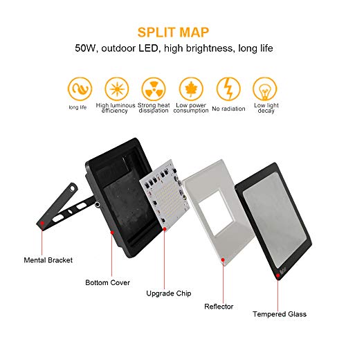 Bapro Faretto LED da Esterno 50W, Fari di sicurezza,Lampada Luce Bianca
