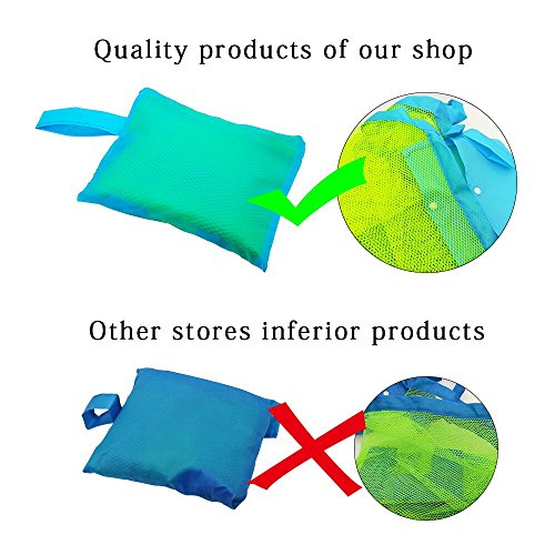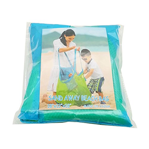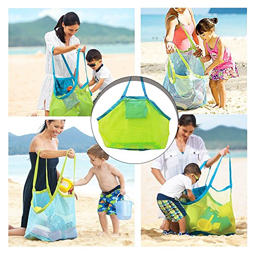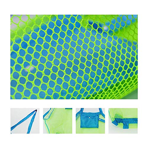 BornFeel grande borsa da spiaggia in rete per giocattoli sabbia via borsa con cerniera per bambino piscina viaggio Sandy scarpe Wet asciugamani 45,7 x 30,5 x 45,7 cm verde maglia blu cinghie