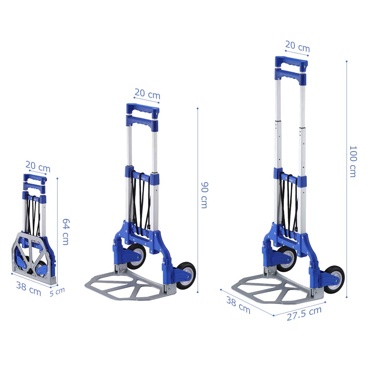 Carrello a Mano Pieghevole Finether da Trasporto in Alluminio Blue - Ilgrandebazar