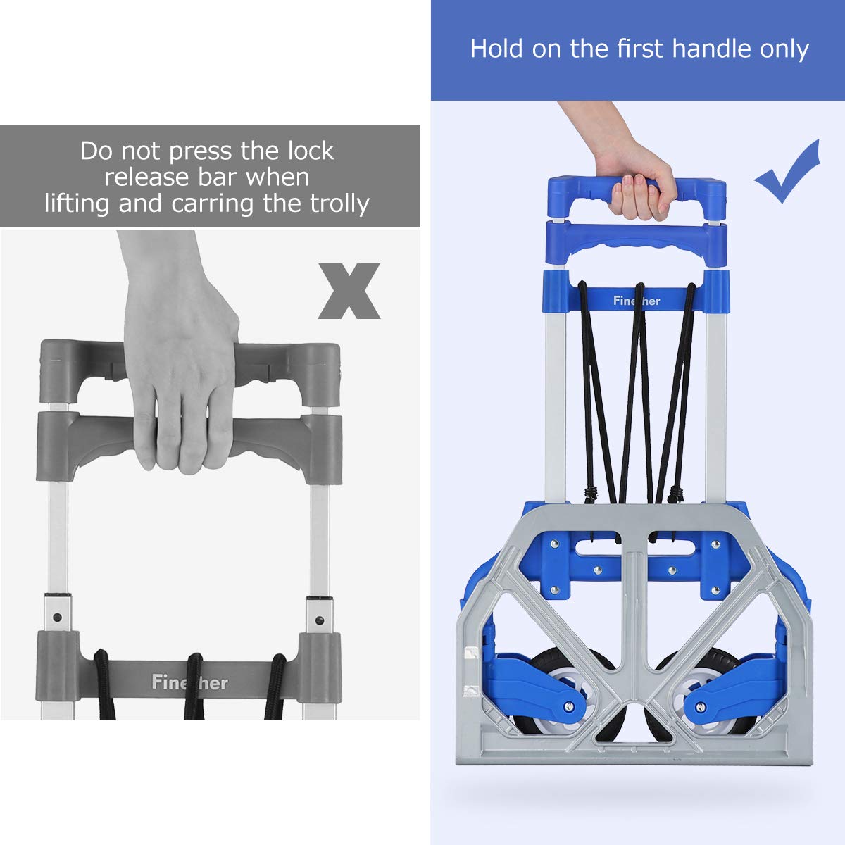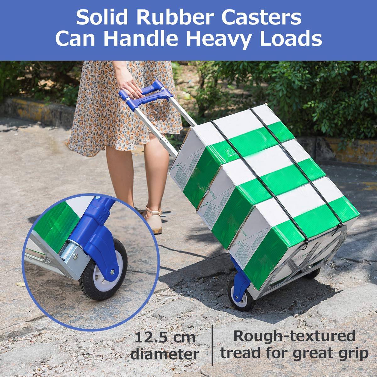 • ※【CARRELLO A MANO DURABILE】: Carrello a mano pieghevole Finether costruito con lega di alluminio, ha la piastra anteriore unibody e tubi quadrati per una capacità di peso di 80 kg ed è resistente alla corrosione e alla ruggine; realizzate in PVC di alta qualità, le ruote rotolano senza intoppi.